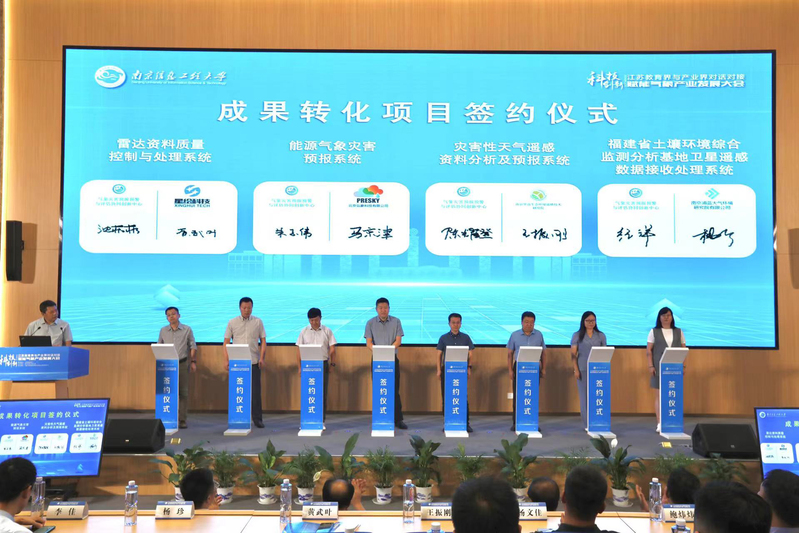 会上,气象灾害预报预警与评估协同创新中心发布了气象领域代表性科技成果,南京信大气象科学技术研究院总经理王晖、北京弘象科技有限公司副总经理马京津作为企业代表进行了企业技术成果发布与展示。大气科学学院院长周波涛代表协同创新中心与气象领域企业进行了现场签约;协同创新中心研究骨干与相关企业代表围绕“电力气象灾害预报系统”“灾害性天气遥感资料分析及预报系统”等研究领域举办了成果转化项目签约。