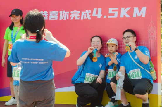 去年我就参加了南信大的校园马拉松比赛,在全民运动的潮流之下,今年我动员全家,带着妻子和孩子一起来参赛。我平时坚持跑步,经常参加半马、十公里等比赛,这次校园马拉松和年轻人一起跑更有意思,能感受到满满的青春活力!